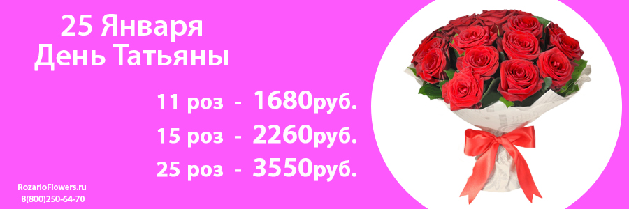 Несмотря на то, что история праздника уходит далеко в прошлое, отмечают его и по сей день. Мужья, отцы, дети, коллеги – поздравляют и дарят своим Татьянам различные подарки, и, конечно же, цветы.  Определенных инструкций и советов какой же выбрать букет – нет. Советуем Вам обратить внимание на чудесные игрушки из цветов, ведь только в Татьянин День мы делаем на них скидку – 20%  !!!